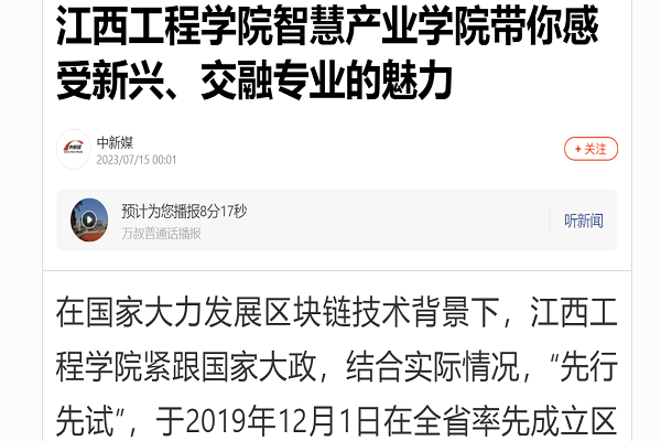 在国家大力发展区块链技术背景下,江西工程学院紧跟国家大政,结合实际情况,“先行先试”,于2019年12月1日在全省率先成立区块链学院。2023年5月更名为智慧产业学院。学院在积极响应国家热门学科建设的浪潮下,融合软件工程、区块链工程、信息管理与信息系统等相关专业为一体,突出交叉学科发展优势,发挥融合专业人才培养内涵,以应用型本科建设为核心,努力培养符合社会需求的专业人才。经过不断发展,学院的专业特色进一步彰显,师资队伍日益优质,教学条件不断提升,教学质量不断提高,内涵建设不断增强,取得了丰硕的成果。