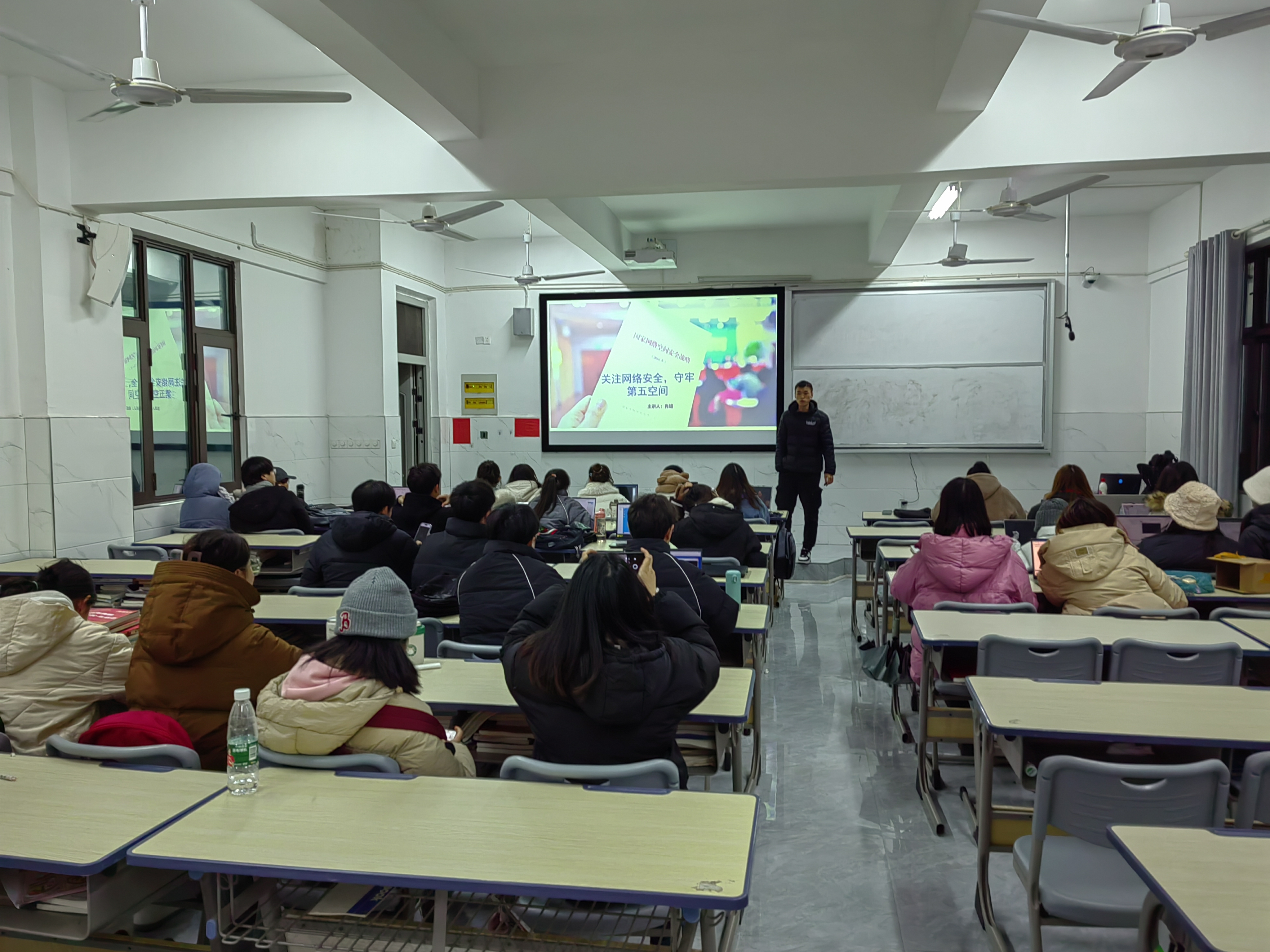 讲座围绕“关注网络安全,守牢第五空间安全”为主题开始,给同学们介绍了我们国家网络安全行业的发展,国家对网络安全的重视,网络安全的技术学习以及网络安全的就业等;