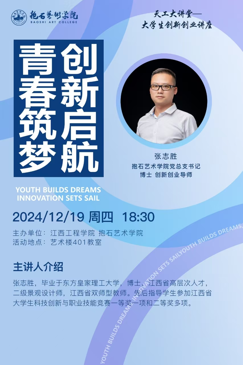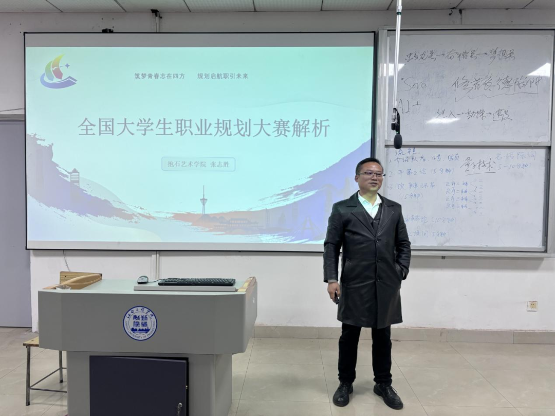 2024年12月19日晚6:30在艺术楼401教室,抱石艺术学院举办了一场以“全国大学生职业规划大赛解析”为主题的大学生创新创业讲座,旨在帮助同学们深入了解大赛内涵,提升参赛水平,增强职业规划意识。此次讲座由张志胜老师担任主讲人,副院长王冬冬主持,2024级全体同学参加。