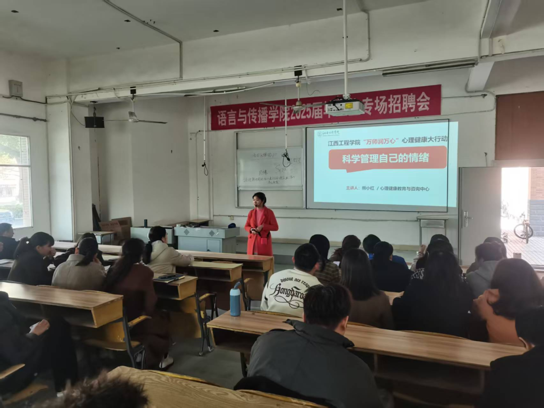 为深入贯彻落实江西省教育厅《全省高校“万师润万心”心理健康大行动实施方案》的文件精神,进一步提升全校辅导员(班主任)工作技能,2025年3月18日下午,江西工程学院在天工校区理工楼D106多媒体教室举办辅导员(班主任)工作技能培训,本次培训由该校学工处心理健康教育与咨询中心熊小红老师开展《科学管理自己的情绪》讲座,所有辅导员(班主任)共计60余人参加。