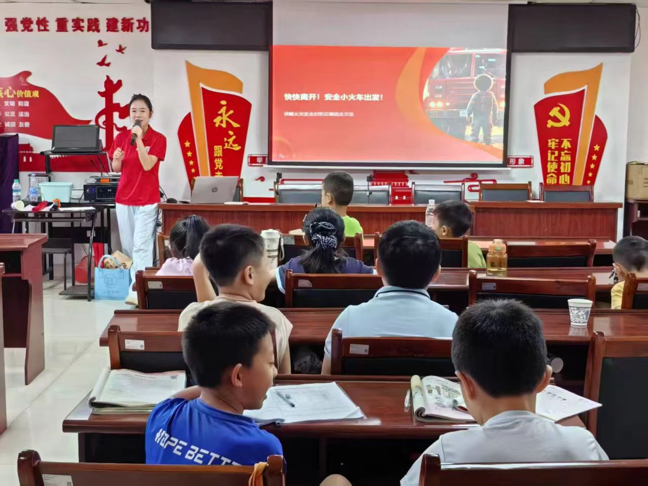 讲是传递思想、共鸣情感的桥梁。实践队员将所学化为生动宣讲,深入基层。7月12日上午,江西工程学院教育与健康管理学院志愿者前往新余市渝水区桂花社区,开展“消防小课堂,平安伴成长”活动。现场,志愿者以问答引导小朋友思考油锅起火、火灾逃生弯腰等消防要点,播放科普视频,并模拟烟雾场景教学毛巾捂口鼻低姿撤离技能。趣味互动中,消防知识深植孩子心间,志愿者借此为儿童安全成长撑起“保护伞”。