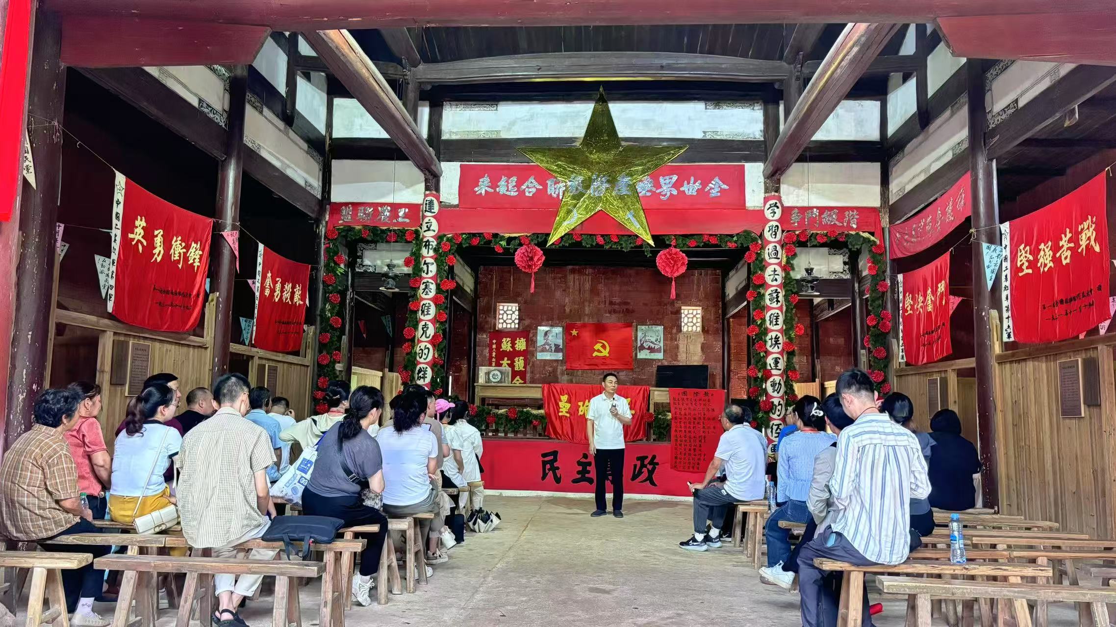 理论筑基。暑期,实践团队通过集中学习、专题研讨、心得分享等方式,系统学习最新理论成果,夯实实践根基;7月中旬,江西工程学院马克思主义学院近30名青年教师,以“沿着总书记的足迹,走好新时代长征路”开展实践教学,回顾习近平总书记对江西的嘱托,聚焦老区发展要求,在瑞金等地追溯红色足迹、感悟苏区精神,为实践指引方向。