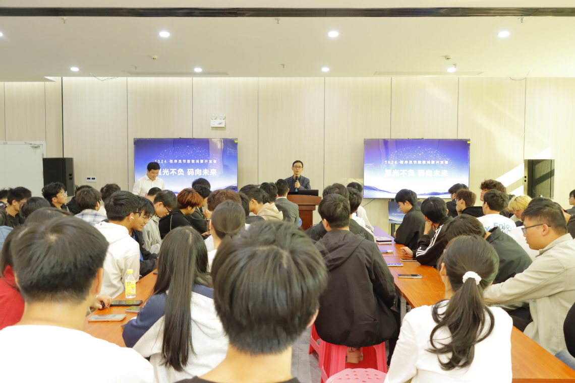 10月24日下午,以“码力全开,共码未来——致敬鸿蒙开发者”为主题的1024程序员节活动在江西工程学院(仙女湖校区)双创大厦一楼成功举办。本次活动由江西幻云信息科技有限公司主办,江西工程学院智慧产业学院承办,旨在为广大程序员和未来开发者搭建技术交流与学习的平台,推动鸿蒙技术在校内的普及与生态建设。