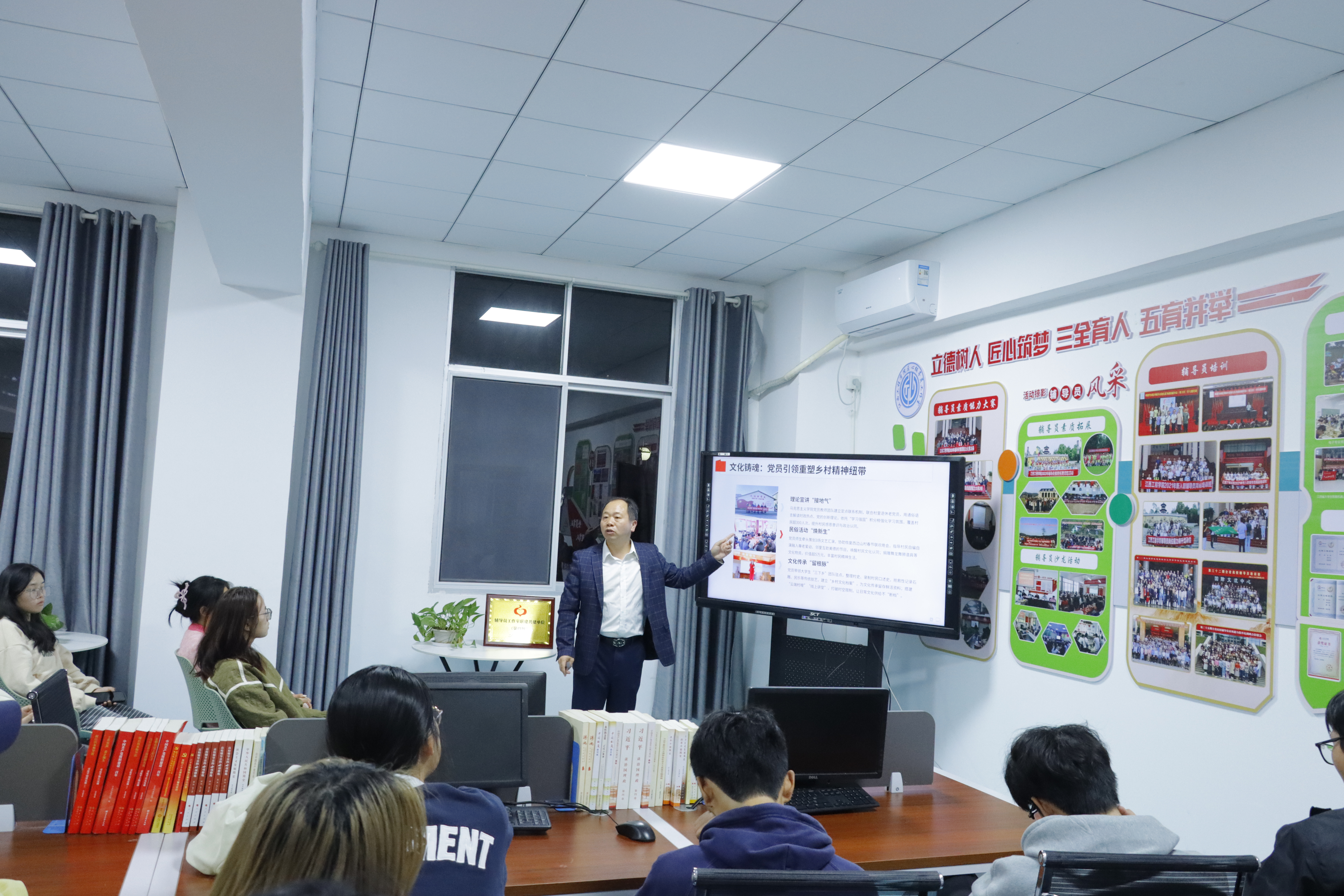 10月23日晚,学校马克思主义学院教师于永清走进“一站式”学生社区,以《高校党员师生服务乡村振兴的实践与机制探索》为题开展座谈交流。抱石艺术学院50余名学生参加此次交流活动。