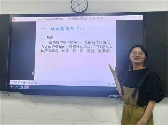 5月6日上午,辅导员深入学院各班级,召开结核病防治主题教育班会,宣传结核病防治知识。