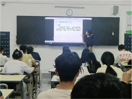 辅导员以PPT、播放动画视频、案例法、问卷知识答题等形式让学生了解什么是结核病、结核病怎么治疗、如何预防感染结核病。重点强调了学校关于结核病防治的要求,首先,需要对结核病相关知识有科学认识,做到不信谣、不造谣、不传谣,掌握结核病的可疑症状、传染途径,增强自我保护意识。其次,学校教室、寝室等室内场所要保持通风,加强空气流通,对空气消毒,降低结核病传染风险。最后,学生个人应加强锻炼,提高自身免疫力,保持良好作息习惯。同时还要保持健康的心理,对结核病传染不产生过度焦虑。