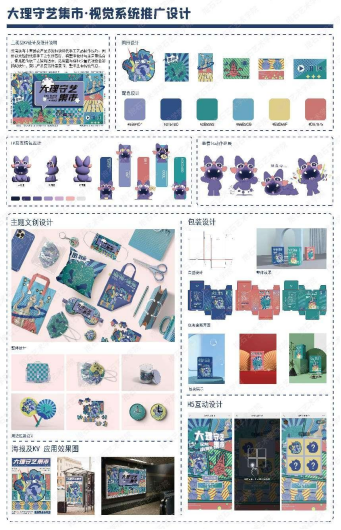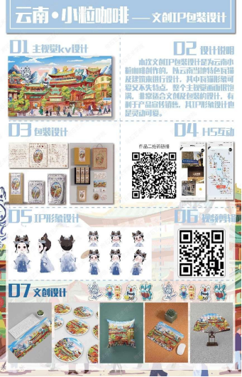 此次成果展主要分为七个方面,视觉传达设计专业展览主要分为:KV设计、包装设计、文创设计、IP设计、信息图形化设计、H5设计、视频剪辑等,从多方位的角度检验学生的采风成果。部分作品展示如下: