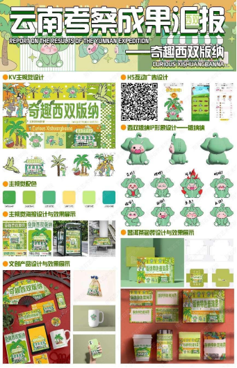 云南采风第一站红河哈尼族彝族自治州——建水;其中处处体现曲径通幽的蚂蚁工坊,有着厚重历史的临安古城,热情似火的凤凰花,感受现代建筑美学与传统建筑美学的碰撞。第二站西双版纳傣族自治州;典型的热带风情,收集傣族的特色服饰、热带植被、坡屋顶建筑群以及装饰图案、泼水节等,感叹各民族文化的多姿多彩。第三站大理白族自治州;参观雕梁画栋的白族民居建筑群,收集门楼、照壁、山墙等彩画装饰艺术元素,了解陶、染、编、织、雕的手工艺文创产品,皆是手作留下的温度与情感。第四站丽江,自由参观大研古镇、白沙古镇、束河古镇,感受白沙老街古村落、明清建筑群和白沙壁画;五彩花石铺就的四方街;有趣的东巴文化和东巴纸艺,亦是历史沉淀的智慧与巧思。第五站昆明,参观记录云南发展的省博,调研文创设计市场。