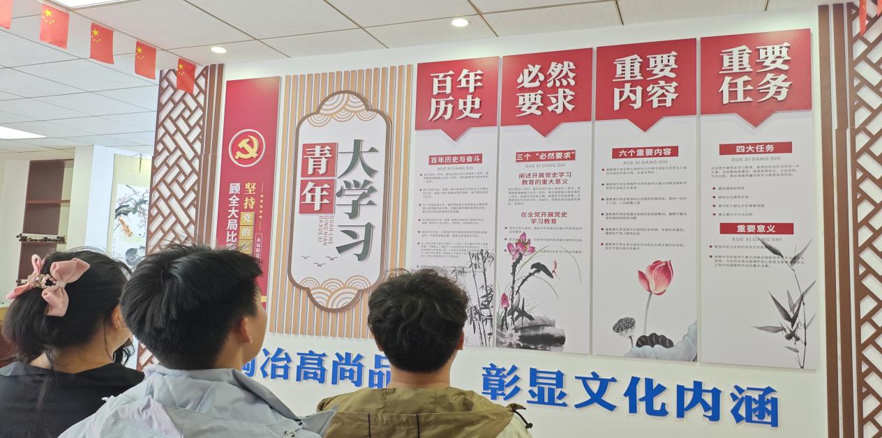 在一站式学生社区,同学们认真观看每幅作品,了解创作者的灵感来源、艺术手法、作品意境,充分汲取艺术养分。