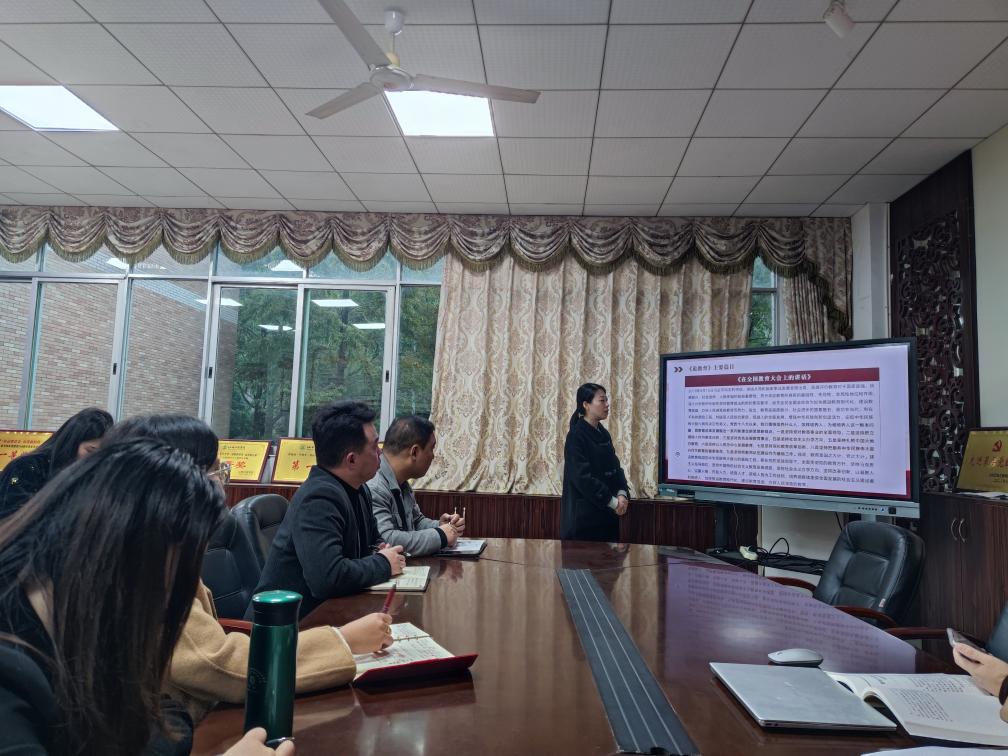 随后,熊秀着重对《论教育》的主要篇目进行详细的讲授,并结合案例从教师发展角度倡导大家深刻领会和实践习近平总书记关于教育的重要论述,将立德树人的根本任务融入到日常教学和学生培养中,不断提升自身的专业素养和教育教学能力,鼓励大家积极探索教育信息化,促进教育变革创新,以实际行动推动学院教育事业的发展,为培养德智体美劳全面发展的社会主义建设者和接班人贡献力量。