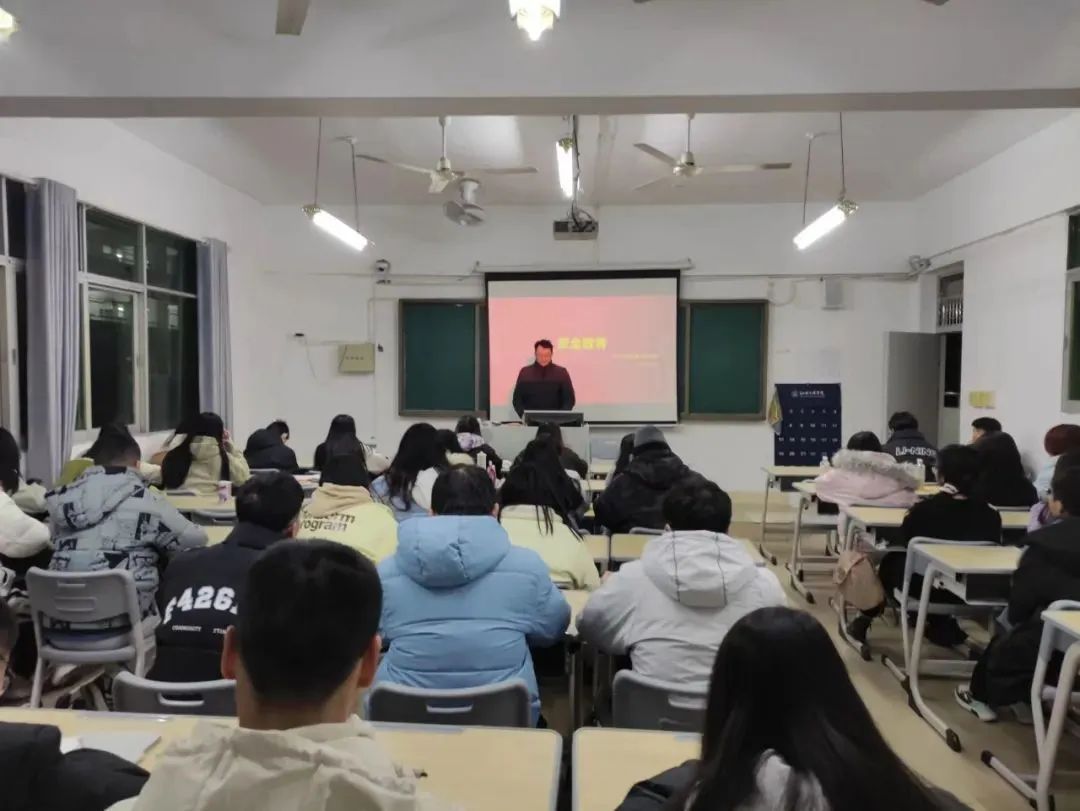班会上,各班辅导员(班主任)向同学们普及了消防安全知识。特别强调了一些重点内容:不要使用大功率电器,避免在电源插座上过载使用插头,以免引发超负荷用电的危险。更重要的是,遇到火灾事故时,同学们要及时联系学校老师,并拨打火灾报警电话119,用正确的逃生方法自救。其次,辅导员(班主任)各班辅导员通过讲解真实案例告诉学生提高食品安全意识的重要性,并将与日常生活息息相关的食品安全知识介绍给同学们,让学生警惕身边食品安全问题。随后,又提到在校外要遵守交通规则,遵守公共秩序,文明乘车,注意交通安全。最后,辅导员(班主任)提到要关注自身心理健康,保持良好的心态,遇到解决不了的事情及时寻求他人帮助。随后,辅导员(班主任)组织大家观看视频。