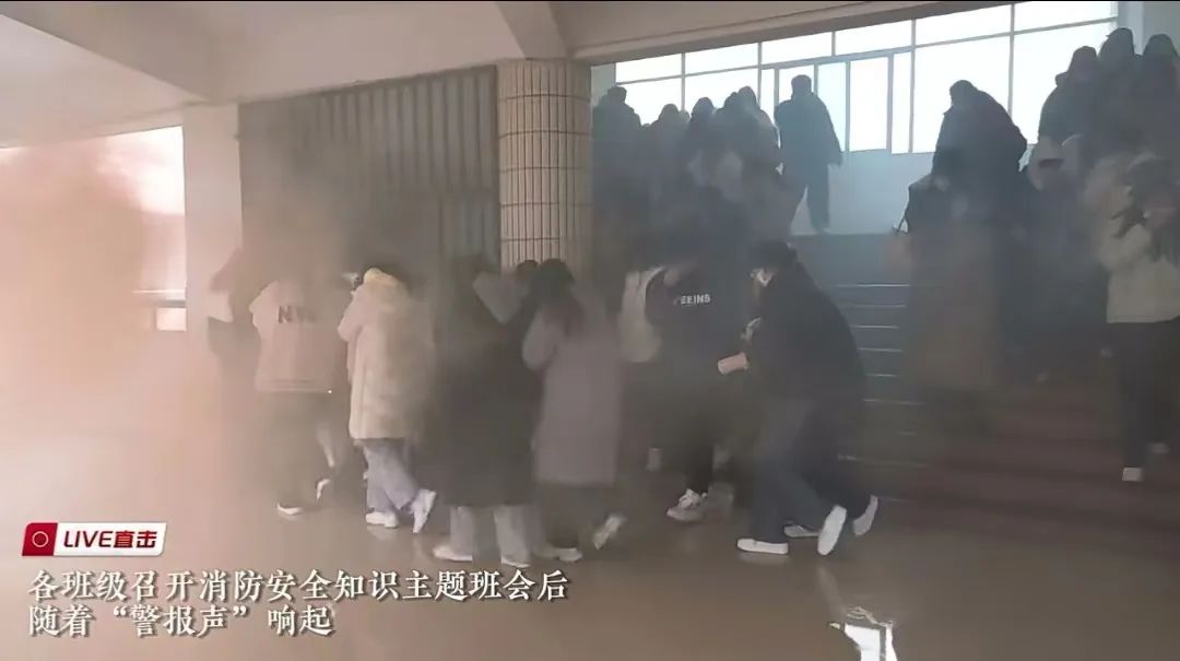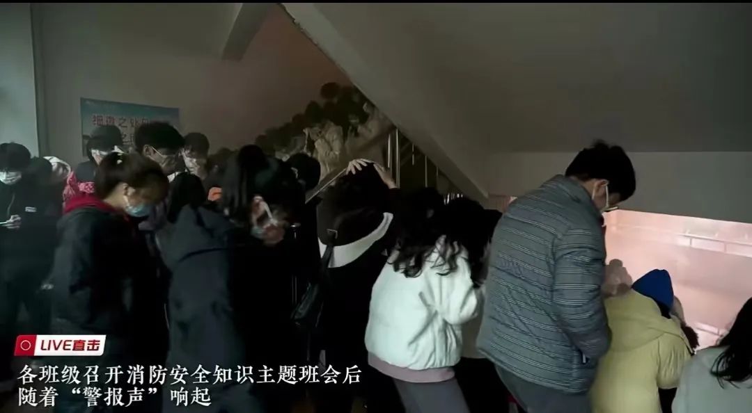 随着警报响起,春季学期消防安全应急疏散演练正式启动。在教师的引导下,学生们迅速且有序地沿着安全通道撤离。每个人都严格遵守指令,用手或手帕掩住口鼻,低头前进,确保在紧急情况下的自我保护。当他们安全撤离到指定地点后,立即整理队形并开始清点人数。整个过程紧张而有序,展现出了学生们良好的应急反应能力和自我保护意识。
