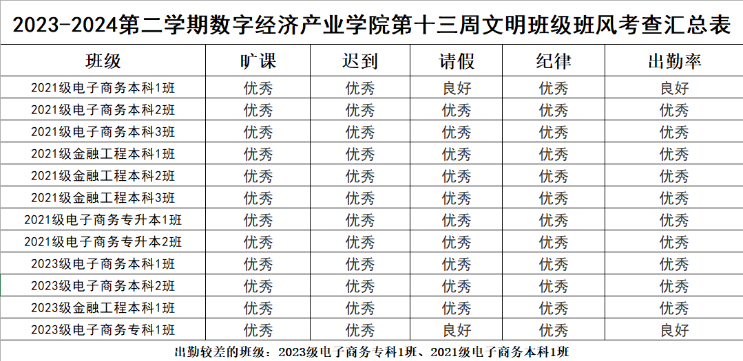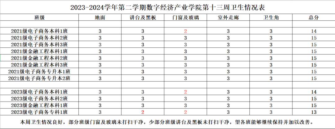 希望表现优秀的班级能够再接再厉,继续保持良好的状态。同时,部分班级也需要加以改进,以提升整体的班级班风水平。我们期待所有班级都能够积极行动起来,为营造一个更加文明、整洁、有序的学习环境而努力。