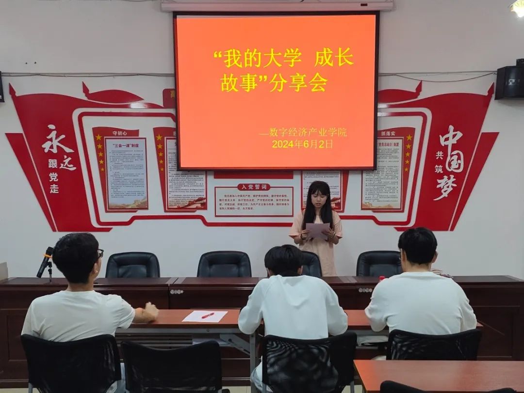 为了更好地落实立德树人根本任务,引导同学们回顾自我成长经历、深化自我认识,明确发展方向、理清目标规划,促进健康成长。6月2日,数字经济产业学院在B201会议室开展了“我的大学成长故事”分享会。本次活动由团总支学生会组织部黄依萍主持,团总支书记陈鹏、刘稳根老师、团总支学生会主席谢立章、团总支学生会副主席熊松毅担任评委,各班学生代表参加。