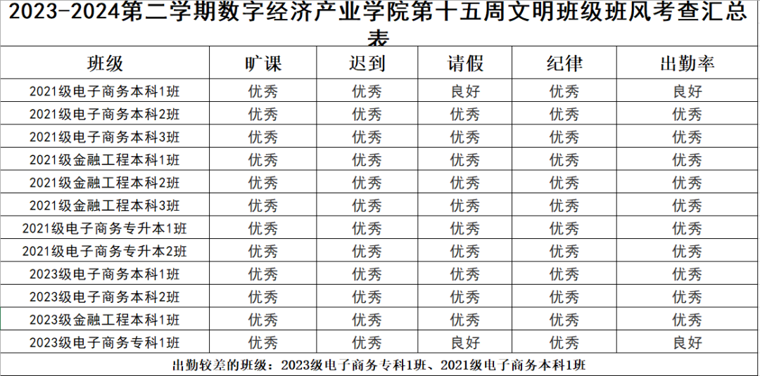 希望表现优秀的班级能够再接再厉,继续保持良好的状态。同时,部分班级也需要加以改进,以提升整体的班级班风水平。我们期待所有班级都能够积极行动起来,为营造一个更加文明、整洁、有序的学习环境而努力。