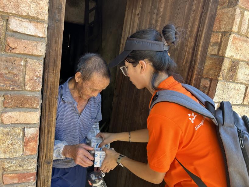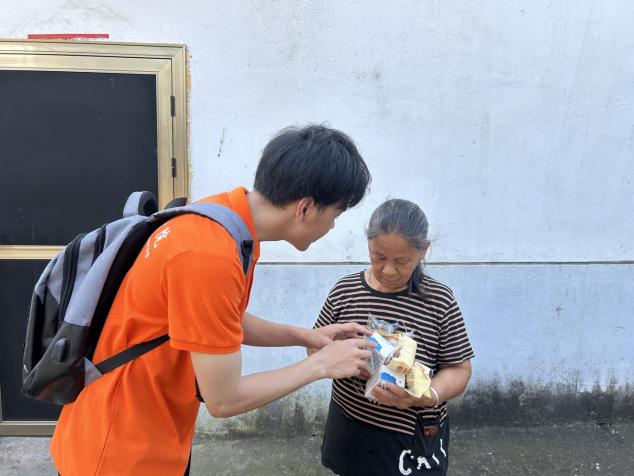 为了让爷爷奶奶们感受到关爱,我们为他们送去了面包和牛奶。接过我们递上的食物,老人们的脸上露出了幸福的笑容。