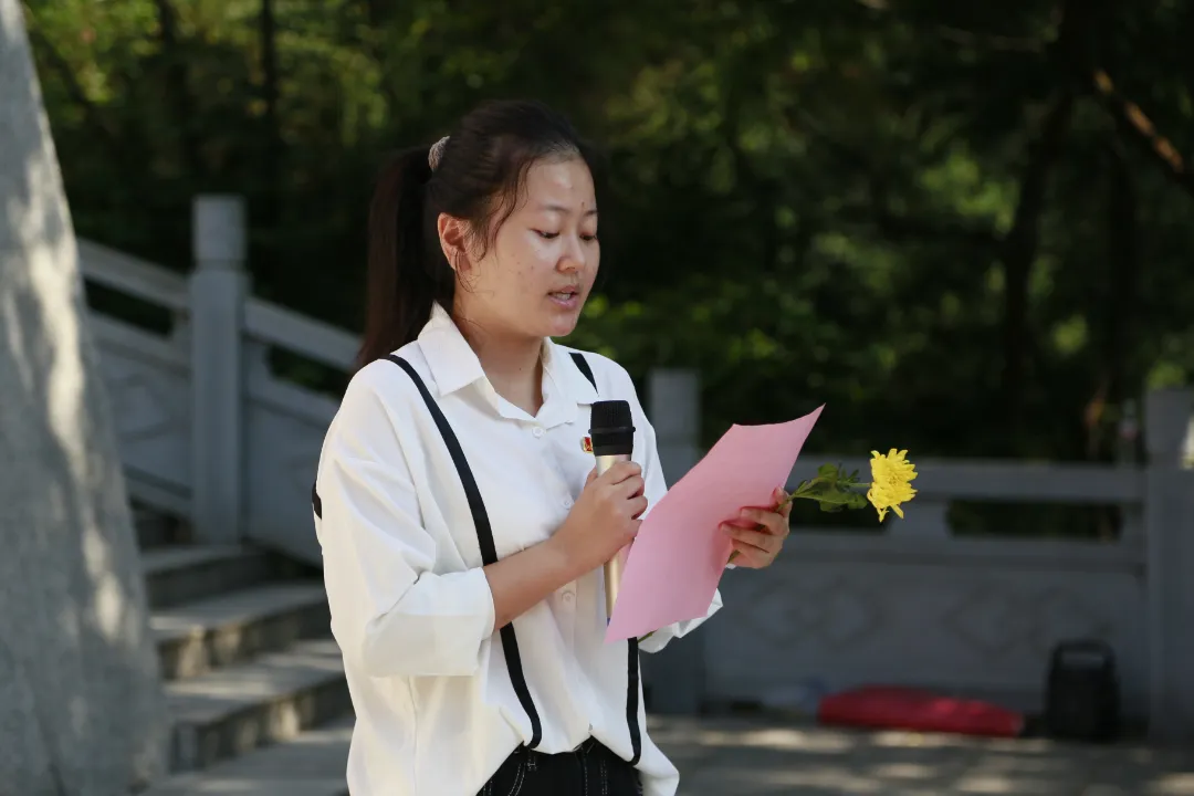 接下来王贝贝同学的演讲将活动推向了高潮。她以饱满的热情和坚定的信念,讲述了革命先烈的英勇事迹和崇高精神,激励同学们要铭记历史、珍惜和平,将个人梦想与国家发展紧密结合,为实现中华民族伟大复兴的中国梦贡献青春力量。
