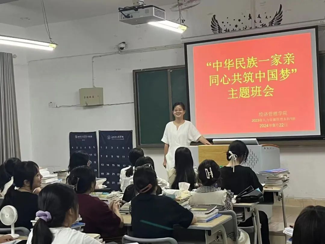 为深入贯彻落实党的民族理论政策,进一步铸牢中华民族共同体意识,营造中华民族一家亲的浓厚氛围,2024年9月22日,经济管理学院召开“中华民族一家亲、同心共筑中国梦”主题班会。