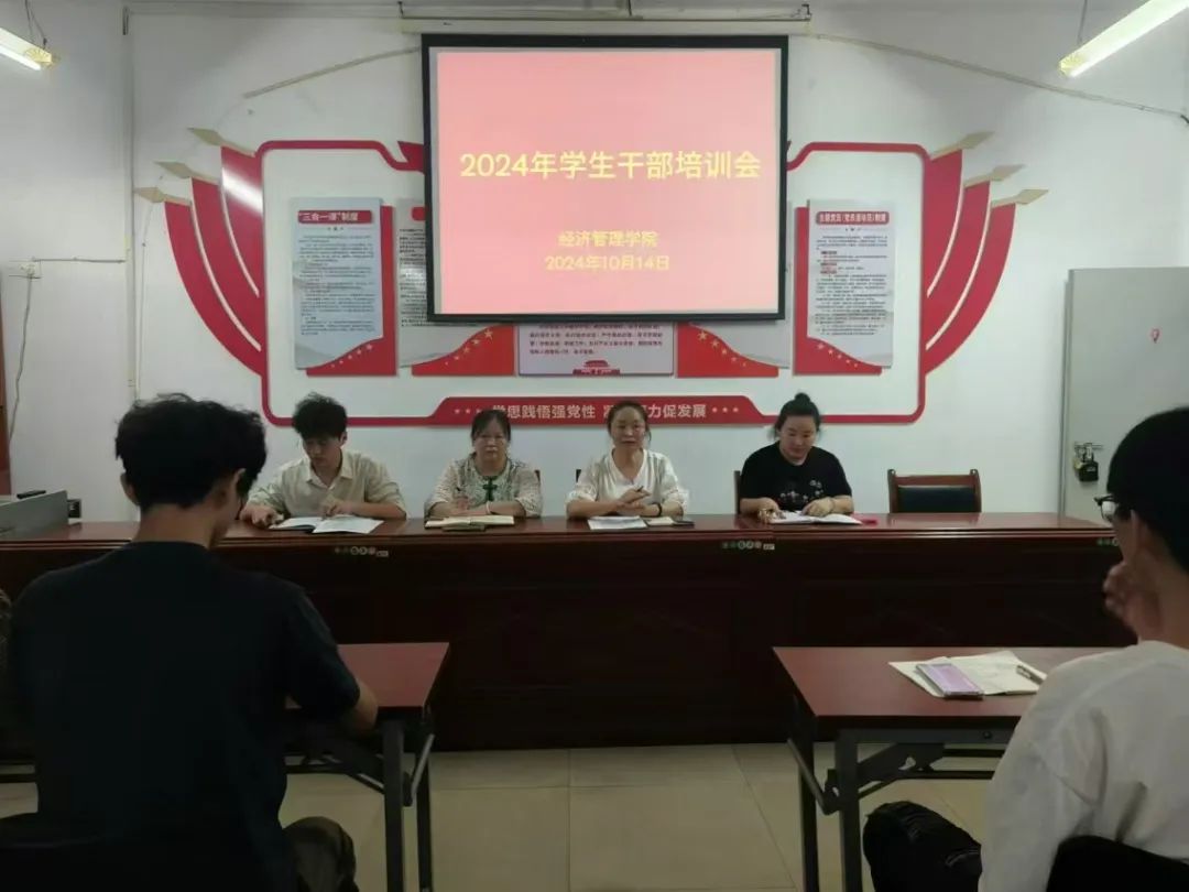 为进一步提升学生干部的综合素养,增强团队凝聚力,明确学生干部的职责与使命。10月14日,经济管理学院在A401会议室召开2024年学生干部培训会,会议由学院党总支书记张文凤主持,党总支专职组织员胡文秀、团总支书记陈鹏、辅导员尹冬慧及团总支学生会各部门主要负责人参加。