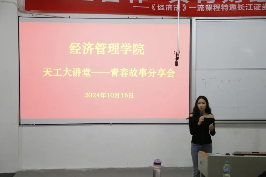 分享青春故事,引领青年学生书写青春华章。为激励青年学生积极向上,奋发有为,10月16日晚7点,经济管理学院在C105举办了天工大讲堂—青春故事分享会活动。本次活动由经济管理学院团总支学生会学术部成员洪烨主持,我院2021级电子商务本科2班的王琳同学主讲。