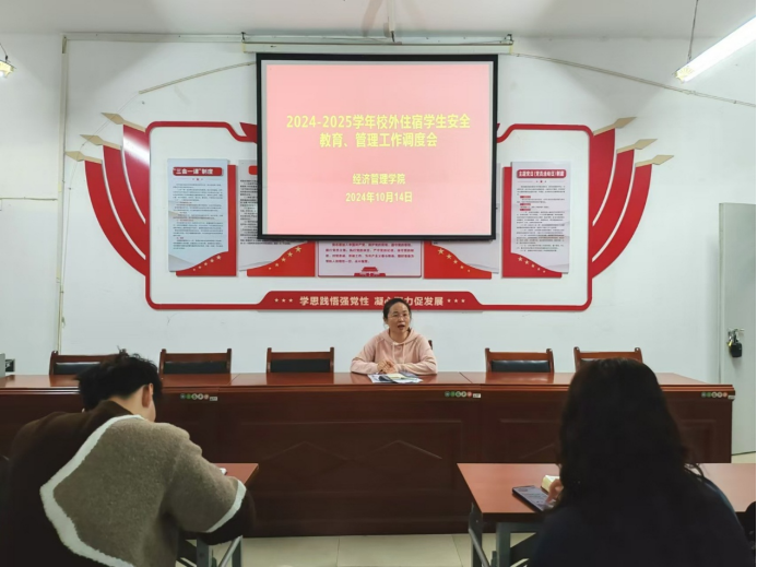 为进一步了解校外住宿学生的安全,增强学生自我防护意识。10月14日,经济管理学院在A401会议室召开2024-2025学年校外住宿学生安全教育、管理工作布置会。本次会议由党总支书记张文凤主持,辅导员(班主任)参加。