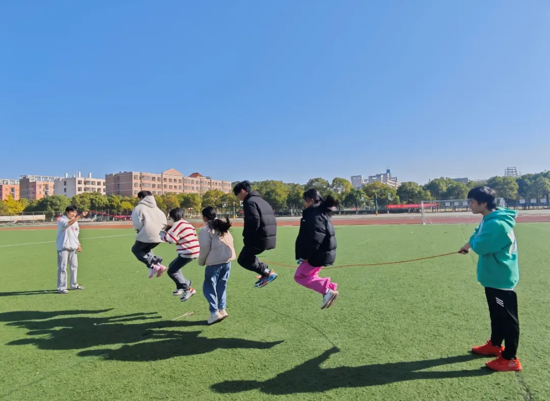 跳绳区彩绳飞舞,轻盈似虹。打头阵的同学鱼跃而入,敏捷跳动,为接力起好调;后续队友无缝衔接,身姿矫健。大家全神贯注,偶尔失误绊绳,伙伴们即刻鼓励“别慌,再来!”,迅速重燃斗志。在跳跃弧线里,展现出青年志愿者的蓬勃朝气,汇聚成协作奋进的能量池,在轻松愉快的氛围中拉近彼此之间的距离。