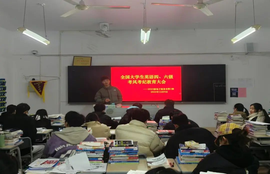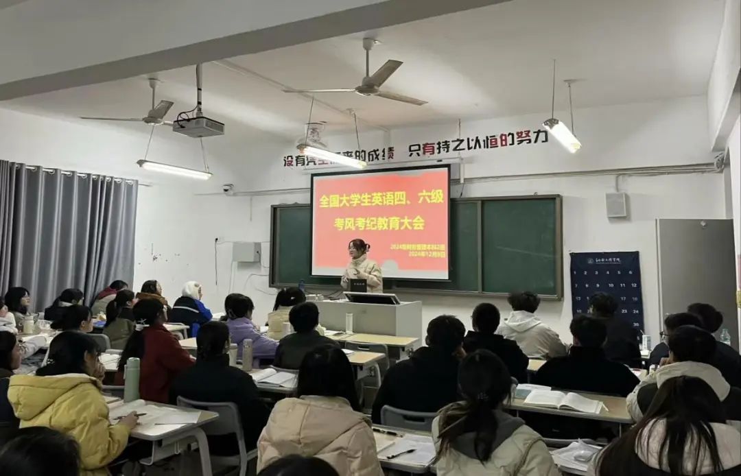 随着英语四六级考试的临近,为强化班级学风建设,营造诚信考试的良好氛围,2024年12月9日,经济管理学院组织各班级开展英语四六级考风考纪大会。