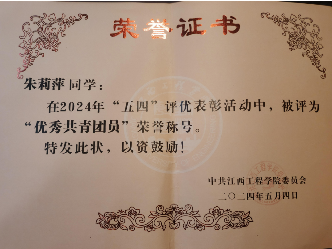 8.2024年5月获校级“优秀共青团员称号”