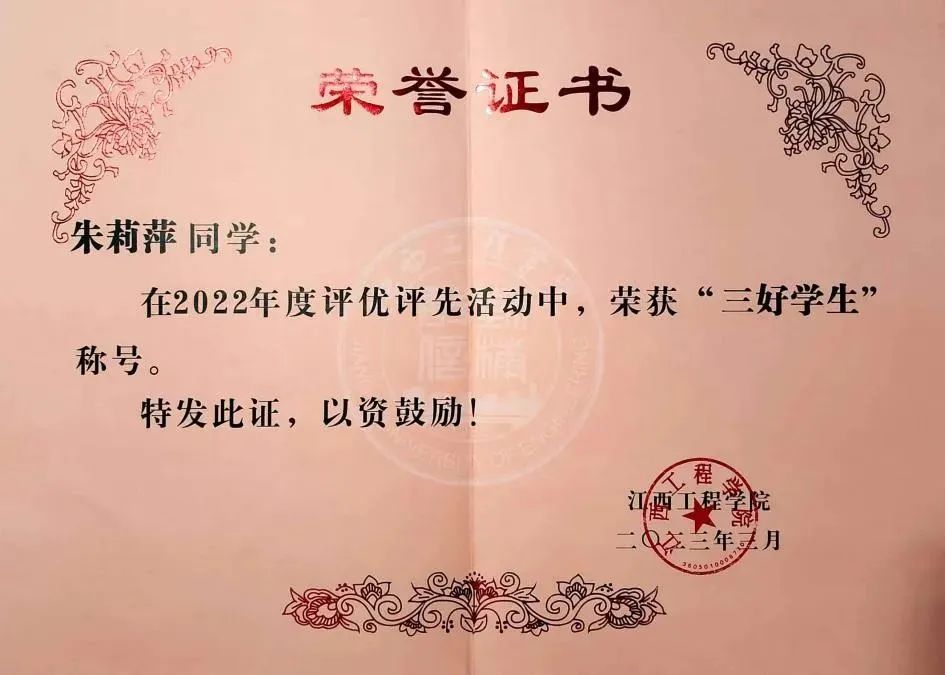3.2023年3月获校级“三好学生”