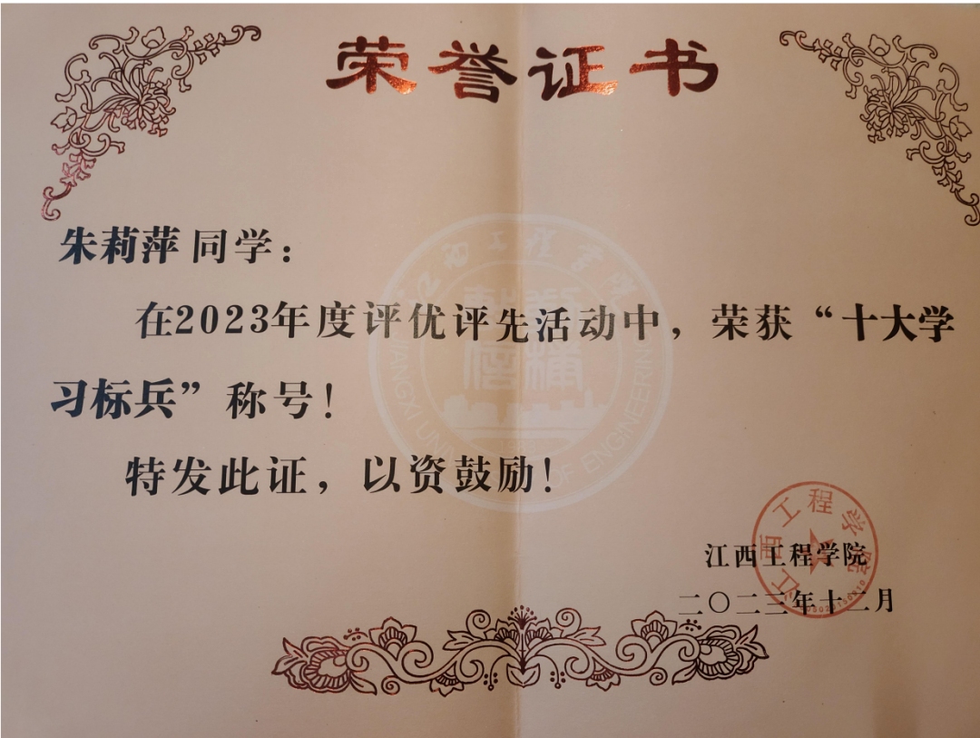 7.2023年12月获校级“十大学习标兵”称号