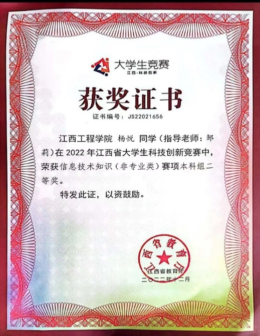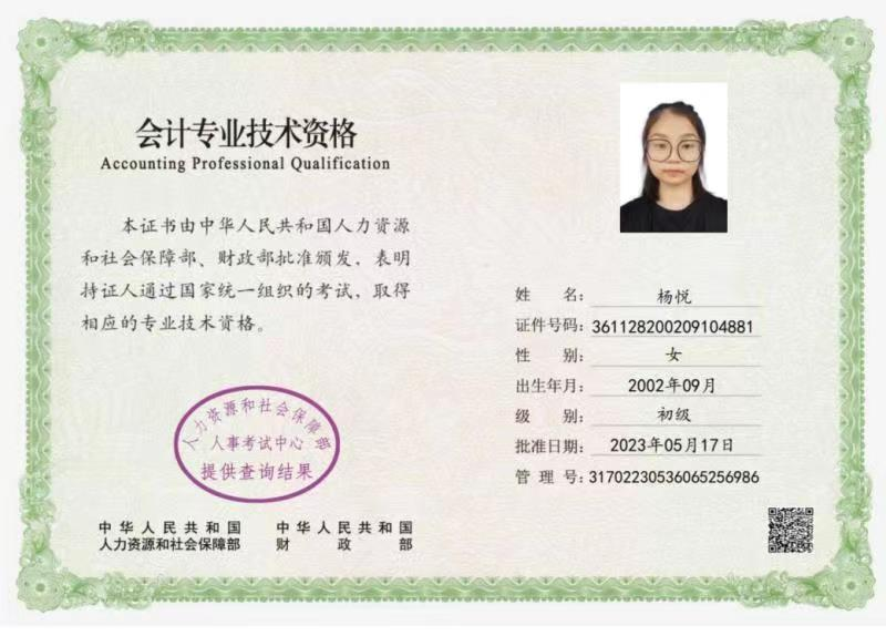 杨悦,江西省上饶人。就读于经济管理学院2021级财务管理本科1班。先后取得英语四级,计算机二级,初级会计资格证书等相关证书。