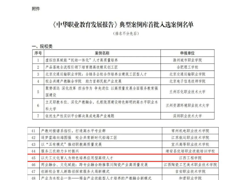 2.【《中华职业教育发展报告》典型案例库首批入选案例】《以天工文化育人为特色培养应用型高级人才》(赖晨)