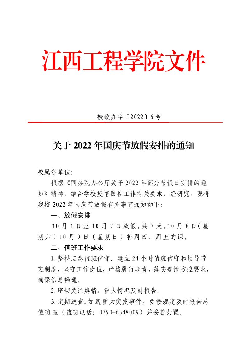 关于2022年国庆节放假安排的通知