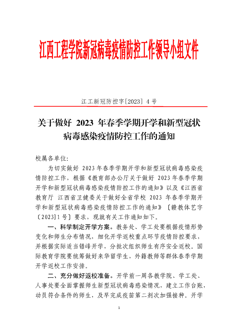 关于做好 2023 年春季学期开学和新型冠状病毒感染疫情防控工作的通知