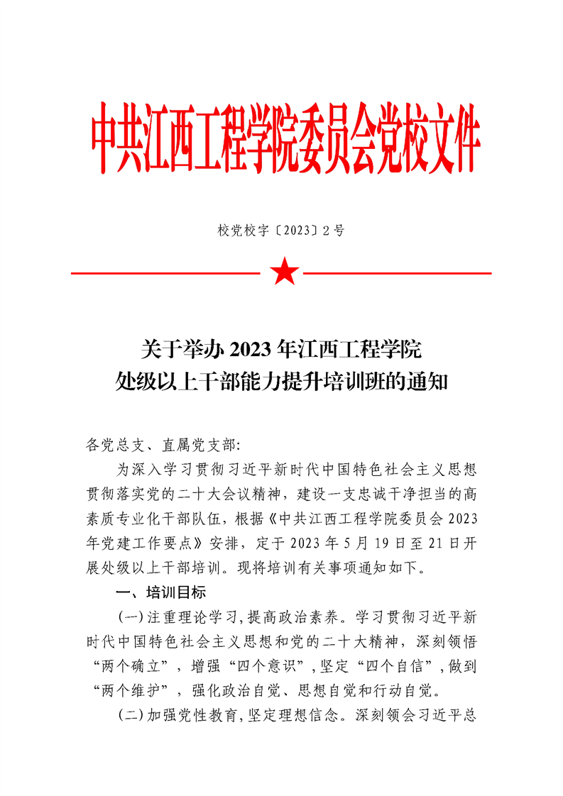 关于举办2023年江西工程学院处级以上干部能力提升培训班的通知