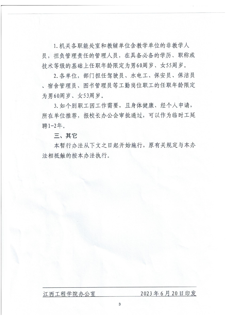 关于印发《江西工程学院关于调整教职工任职年限的暂行办法》的通知