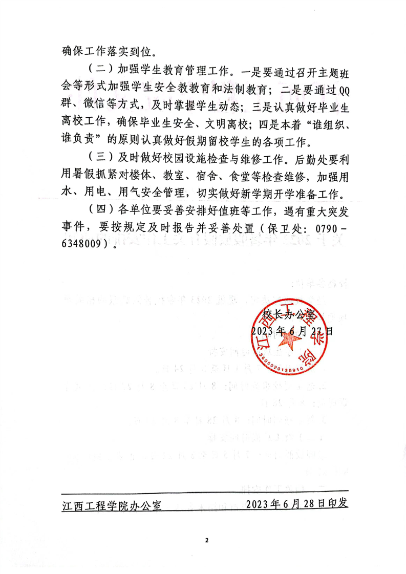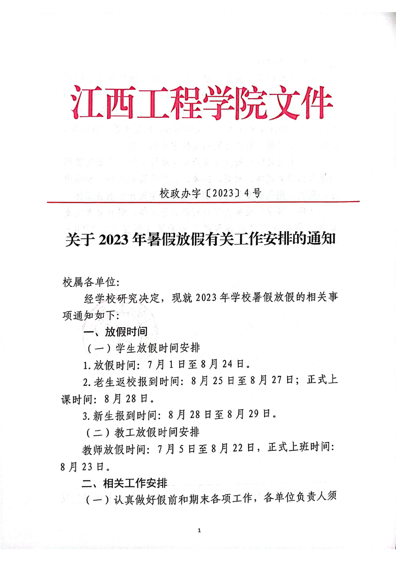 关于2023年暑假放假有关工作安排的通知