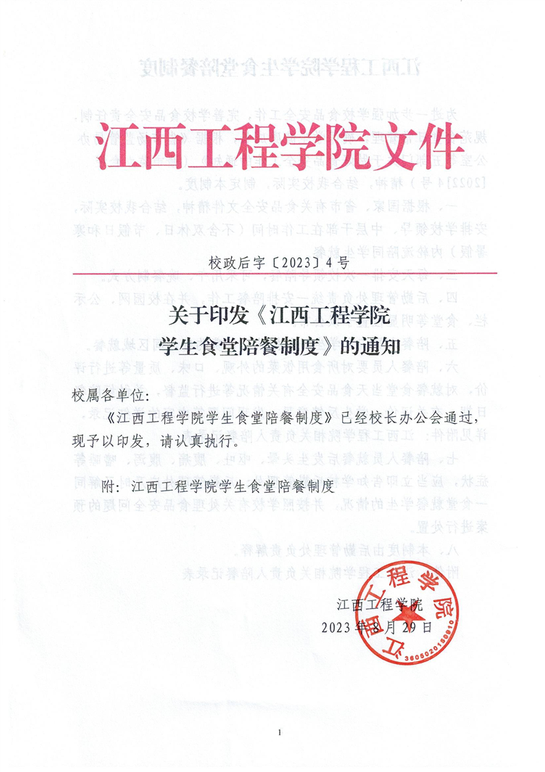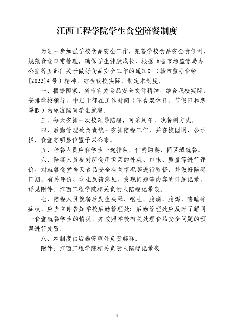 关于印发《江西工程学院学生食堂陪餐制度》的通知