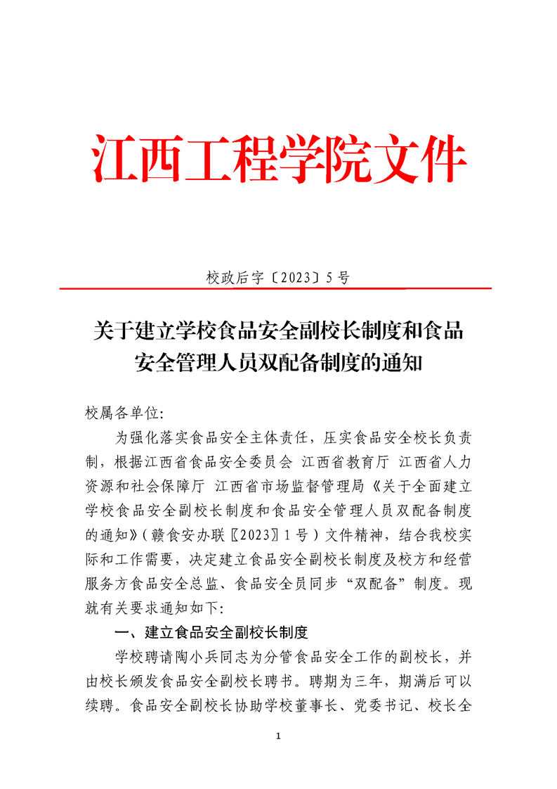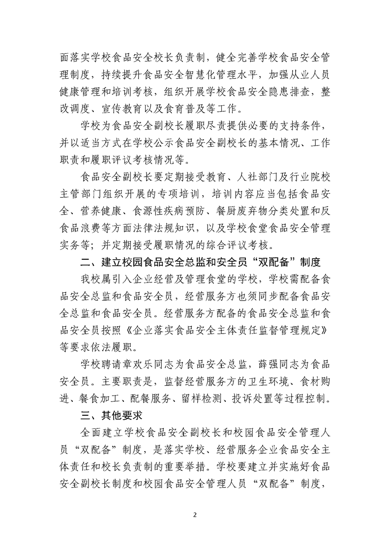 关于建立学校食品安全副校长制度和食品安全管理人员双配备制度的通知