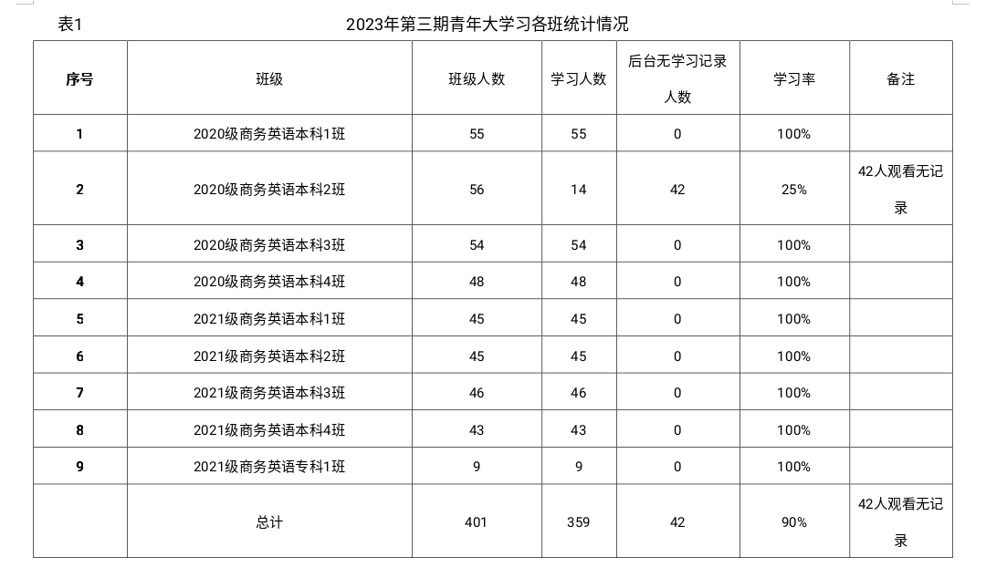 青年大学习|外语外贸学院2023年第三期“青年大学习”各班学习情况