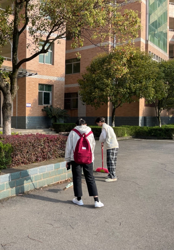 活动伊始,学生志愿者们携带扫把、簸箕等清理工具,积极配合学校划分部署,各学院分区域进行清扫,将清扫活动落小、落细、落实,以便于效益达到最大化。大家团结协作,充分发扬不怕脏、不怕累的精神,对校园落叶进行了全面清扫。每一环节都一丝不苟,不放过任何一个死角,从“心”开始,从“细”着手,让每一片落叶都无处遁形,为全体师生营造一个洁净舒适的环境。在志愿者们的不懈努力下,校园各处飞撒的落叶被有序地收集成堆,为校园营造出了优美的育人环境。