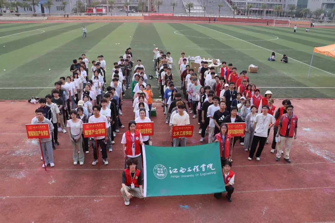 三、特别时刻,定格春日温暖记忆在开跑仪式上,领跑员杨浩德高举校旗引领队伍,鲜艳旗帜与缤纷彩粉交织成流动画卷。选手们为完成任务的奇思妙想,为江工校园文化地标增添青春注脚。活动尾声的抽奖环节更是惊喜频出,获奖团队捧回定制运动礼包时,脸上洋溢的成就感成为最美勋章。