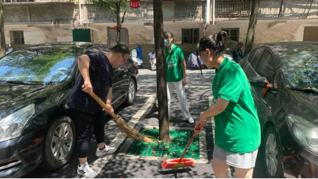 第三天下午,大家早早地抵达指定小区。他们分工明确、迅速行动,拿起扫除工具,清理起社区绿地内杂草、堆积垃圾以及清理小区垃圾。随后,在居委会书记的安排下,积极的帮助社区内居住的老人清理楼道间的杂物,大到旧床垫,小到木板等废弃物,队员们践行不怕苦不怕累服务精神的给社区居民们清理出一个美好的住所环境。劳动中,大家挥汗如雨,以实际行动践行环境保护的责任与义务。