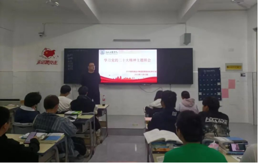 在这一年里,学生会积极组织学习了《习近平与大学生朋友们》和《习近平谈治国理政》第四卷,旨在向学生会内部成员传达党的声音和主张,以新时代新青年的标准规范学生会成员的行为习惯。此外,2022年还是特殊的一年,中国共产党第二十次全国代表大会于1016日在北京人民大会堂开幕,学生会积极组织工作人员线下观看开幕式活动,在会后深度解读了二十大的会议精神。