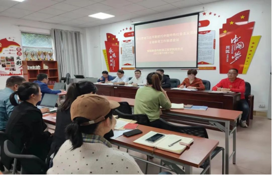 为进一步推动学习贯彻习近平新时代中国特色社会主义思想主题教育走深走实,20231011日,智能制造与能源工程学院在仙女湖校区B104会议室召开学习贯彻习近平新时代中国特色社会主义思想主题教育工作推进会议,会议由党总支书记范向红主持,院长史洪松、副院长彭秋梅、党总支副书记李思以及全体党员参会。
