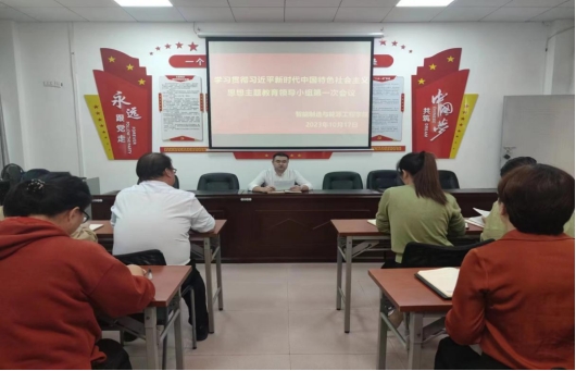 1017日,智能制造与能源工程学院学习贯彻习近平新时代中国特色社会主义思想主题教育领导小组第一次会议在仙女湖校区B104会议室召开,会议由学院党总支书记范向红主持,学院主题教育领导小组全体成员参会。