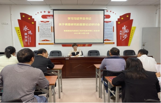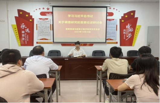 为认真学习贯彻习近平总书记关于调查研究的重要论述,20231018日,智能制造与能源工程学院教师第一党支部、教师第二党支部、学生党支部分别在仙女湖校区A103会议室、B104会议室召开学习习近平总书记关于调查研究的重要论述研讨会。