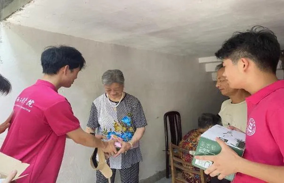 宣讲结束后,实践队全体成员在社区工作人员的详细介绍下,选取了多家社区高龄老人家庭进行走访,实践队员们带上牛奶、面包等慰问物资,一同走进社区高龄老人家中。队员与老人们促膝交谈,关切地询问老人的生活、健康状况,给他们科普了常见病的医学知识,介绍常见的防暑降温方法和注意事项,交流现场其乐融融。